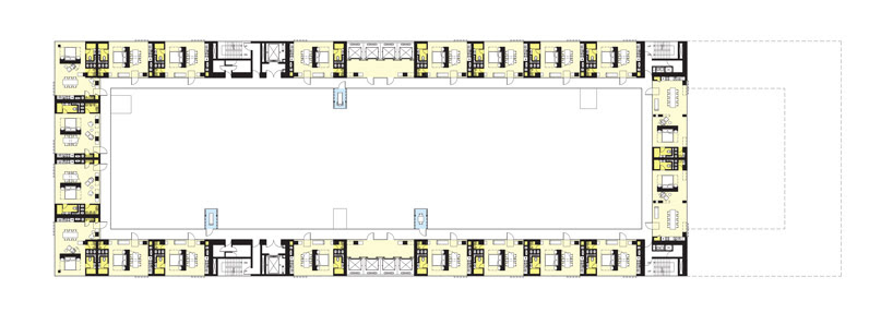 provide views and daylight from both sides, cross-ventilation, and creates a sense of community through the development of a central courtyard,